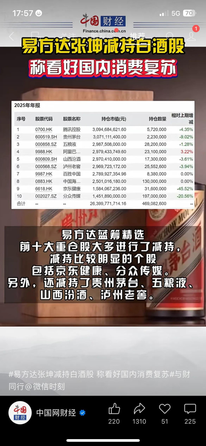 要知道,过去白酒的高涨幅,离不开高端消费和礼品市场的支撑,而如今消费市场的核心需求,早已下沉到大众层面,年轻人的饮酒选择,直接反映出消费赛道的风向变化。张坤连续减仓白酒,并非看空整个消费赛道,而是在调仓换股,把资金从涨不动的高端白酒,转向更具增长潜力的大众消费、服务消费赛道,这一点从他增持阿里巴巴的操作中,也能看出端倪——布局能覆盖更多大众消费场景的优质标的,才是当下消费赛道的核心机会。
